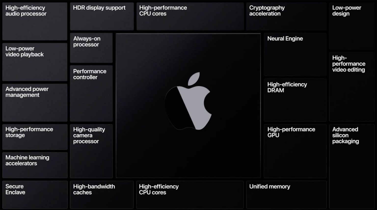 Komputery Mac z Apple Silicon będą wyposażone w chipy Apple z serii A zbudowane w 5-nanometrowym procesie. Własne chipy Apple wprowadzą znaczną poprawę szybkości i wydajności, a także wsparcie dla uniwersalnych aplikacji, które mogą działać na wszystkich urządzeniach Apple. Apple planuje przenieść wszystkie swoje komputery na Mac na własne procesory w ciągu około 2 lat.