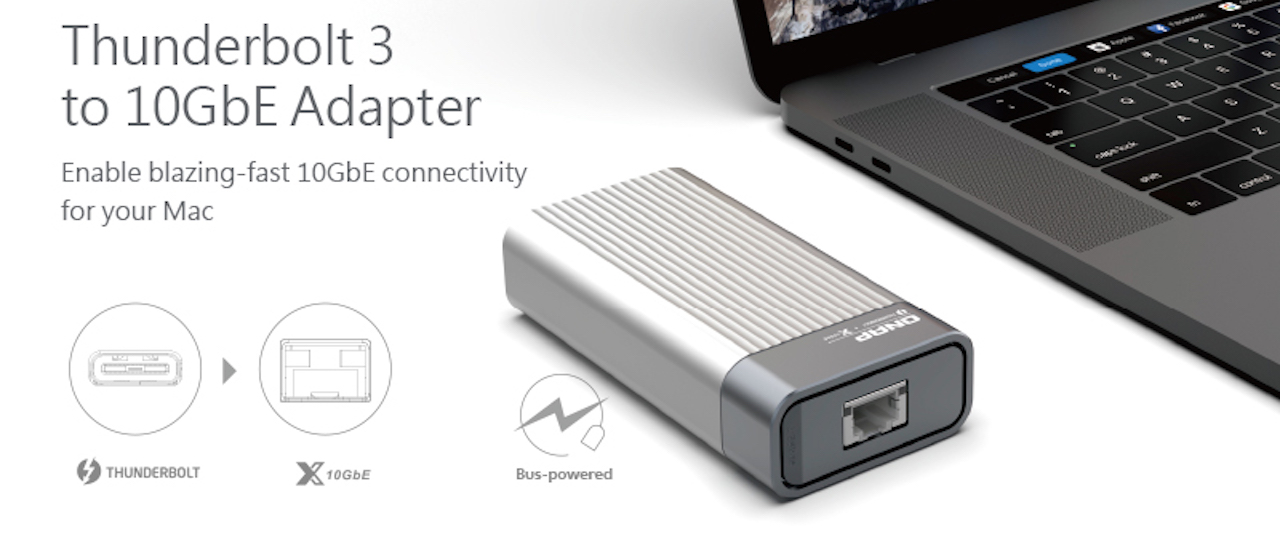 QNAP wprowadził właśnie do oferty niedrogą przejściówkę Thunderbolt 3 – 10GbE, umożliwiająca komputerom z systemem Mac® (lub Windows®, o ile dysponują takim portem) łączenie się z niezwykle szybką siecią 10GbE za pomocą portu Thunderbolt 3 typu C.