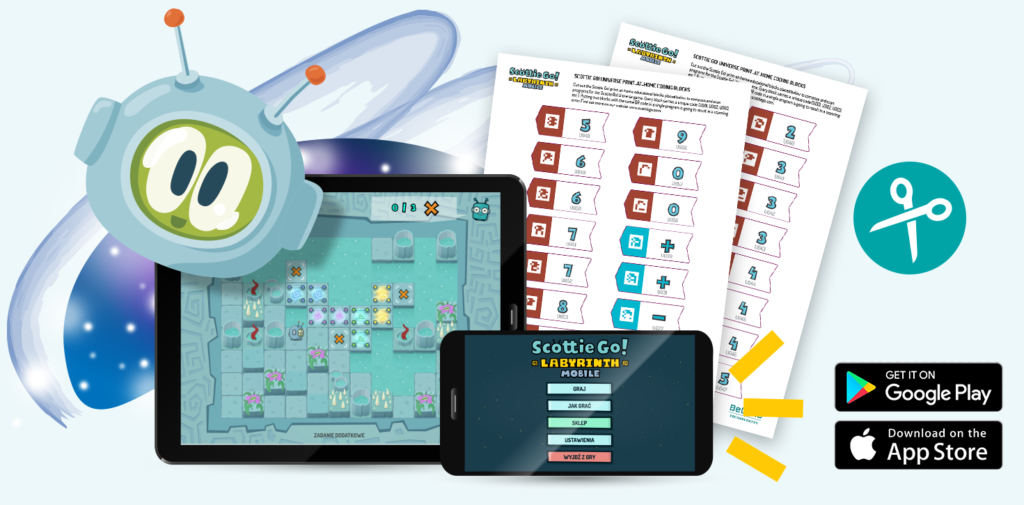 BeCREO Technologies, twórcy światowego hitu Scottie Go!, jednej z pierwszych na świecie gier do nauki programowania z elementami Rozszerzonej Rzeczywistości (Augmented Reality), łączącej kartonowe bloczki do układania kodu z darmową aplikacją na platformy mobilne, wprowadzają nową wersję gry dostępną na telefony i tablety z systemami iOS. Od teraz wystarczy pobrać aplikację mobilną Scottie Go! Labyrinth Mobile, wydrukować samodzielnie bloczki do programowania i w przypadku, gdy gra się spodoba, dokupić dodatkowe poziomy w sklepie aplikacji.