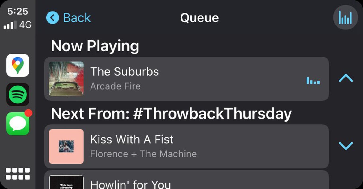 Warto zauważyć, że przeprojektowany interfejs użytkownika dodaje nowy system kolejkowania, który znacznie przybliża Spotify w CarPlay do sposobu, w jaki działa Apple Music. Użytkownicy mogą teraz zobaczyć, które utwory są w kolejce, bez konieczności patrzenia na iPhone’a, dzięki przyciskowi „Przejdź do kolejki” na ekranie Teraz odtwarzane. Użytkownicy mogą teraz również przechodzić do strony Spotify artysty, dotykając jego nazwiska.