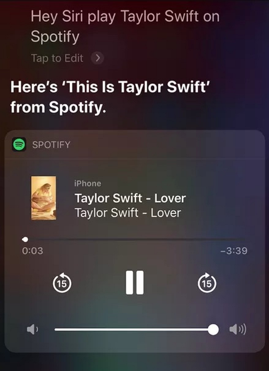 Prosząc Siri o odtworzenie utworu, albumu itp. użytkownicy muszą określić że chcą otworzyć to „w Spotify”, inaczej domyślna aplikacja to Apple Music.