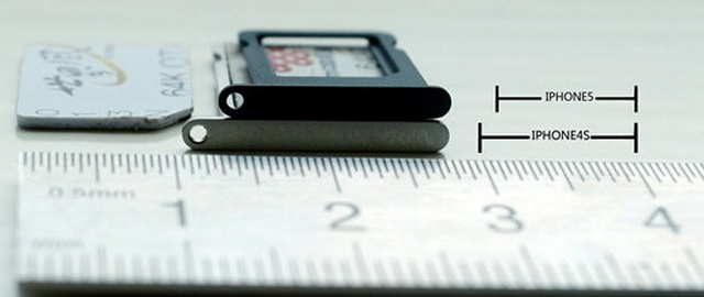 Wraz z nowymi zdjęciami tacki do kart SIM w następnej generacji iPhone’a, ponowne analizy zdjęć z początku maja, które również miały być prawdopodobnymi częściami nowego iPhone’a dowodzą, że były błędne. Z wstępnej oceny widać, że tamta część była prawie identyczna z tą stosowaną w iPhone’ie 4S. Jednak te zdjęcia pokazują, że sama tacka jest mniejsza i ma zupełnie inne proporcje. Jest o 40% mniejsza niż ta do kart mikro-SIM i ma wymiary 2,3 mm szerokości 8.8 mm wysokości, oraz 0.67 mm grubości. Podobnie jak jej poprzednia wersja karta nano-SIM wymaga tacki do jej montażu w urządzeniu i to właśnie ona była jednym z powodów sporu w rywalizacji pomiędzy producentami smartfonów w sporze o standard karty SIM.