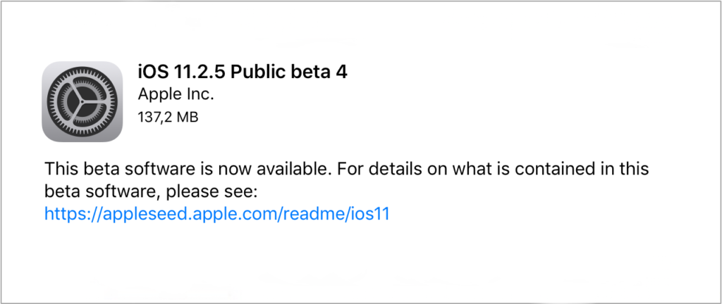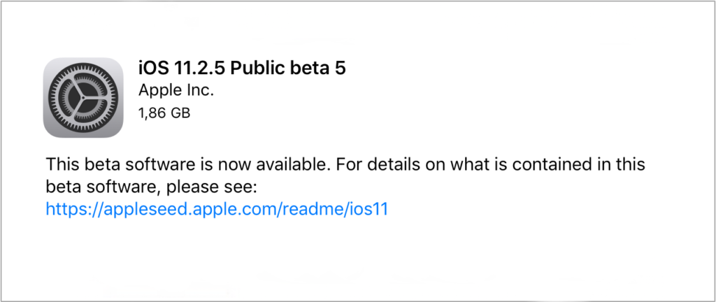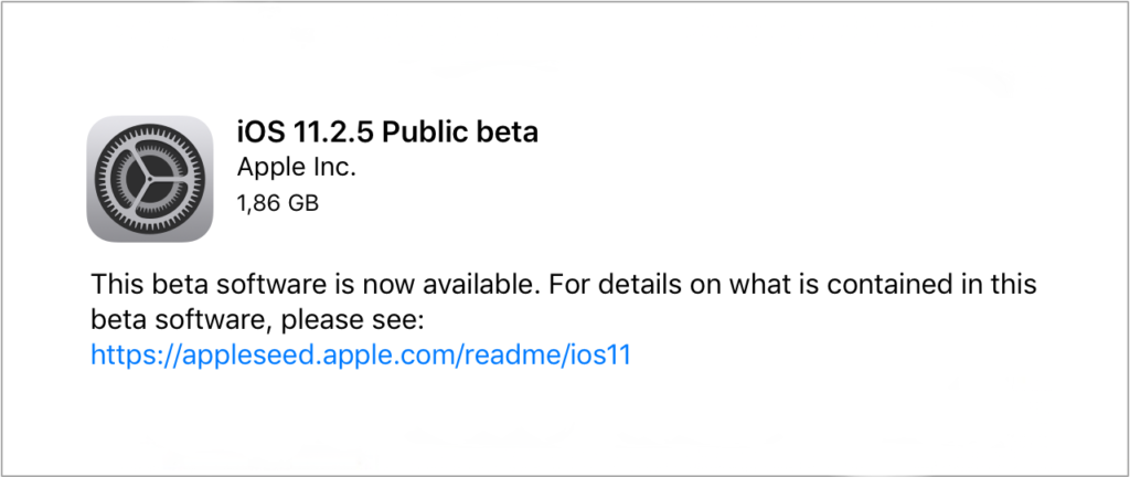 Firma Apple opublikowała pierwszą publiczną wersję beta systemu iOS 11.2.5 dla swojej grupy publicznych beta testerów, dzień po tym, jak pierwsza wersja beta została udostępniona deweloperom.