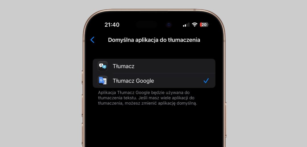 Domyślną aplikację do tłumaczeń można zmienić, o ile posiadacie system iOS 18.4 lub iPadOS 18.4 lub nowszy.