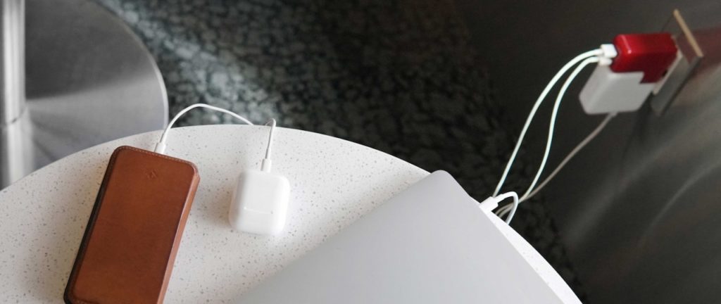 - Ładuje 3 urządzenia z jednego gniazdka (MacBook + 2 urządzenia USB)