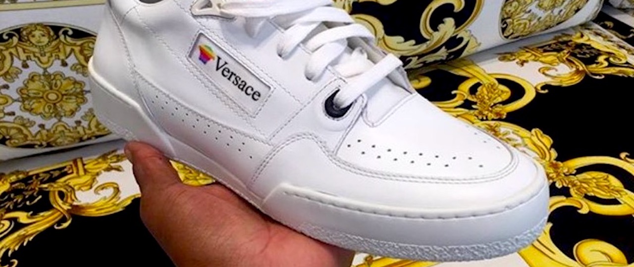 Sneakersy, które Bembury pokazał na swoim Instagramie w tym tygodniu, są oczywistym powrotem do tych ekskluzywnych butów. Mają ten sam biały, minimalistyczny wygląd, prawdopodobnie z podobną skórzaną górną konstrukcją. Jedak tym razem, zamiast nazwy Apple i znaku firmowego na boku i na języku, buty zaprojektowane przez Bembury mają nazwę Versace, ale przy logo firmy jest charakterystyczna dla Apple tęcza.